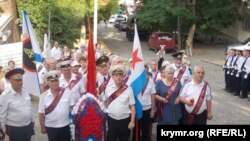 После митинга ветераны российского военно-морского флота возложили цветы.
