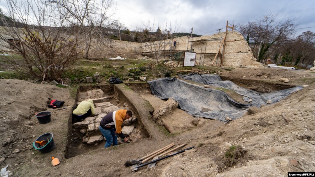 А на площадке с тыльной стороны Соколиной башни тем временем работают археологи