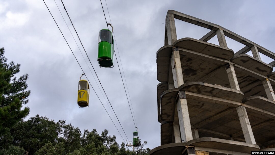 К канатной дороге курортного отеля «Respekt Hall» предельно приблизились бетонные этажи очередной новостройки. Сами кабинки канатки застыли, скорее всего, до следующего курортного сезона