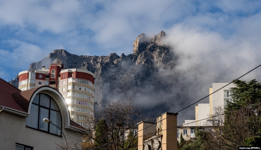 Вид на Ай-Петринские зубцы из центра поселка Кореиз